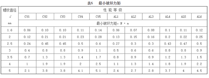 試驗(yàn)方法按GB /T 3098.10第7章進(jìn)行,測得數(shù)據(jù)應(yīng)符合表3-表5的規(guī)定