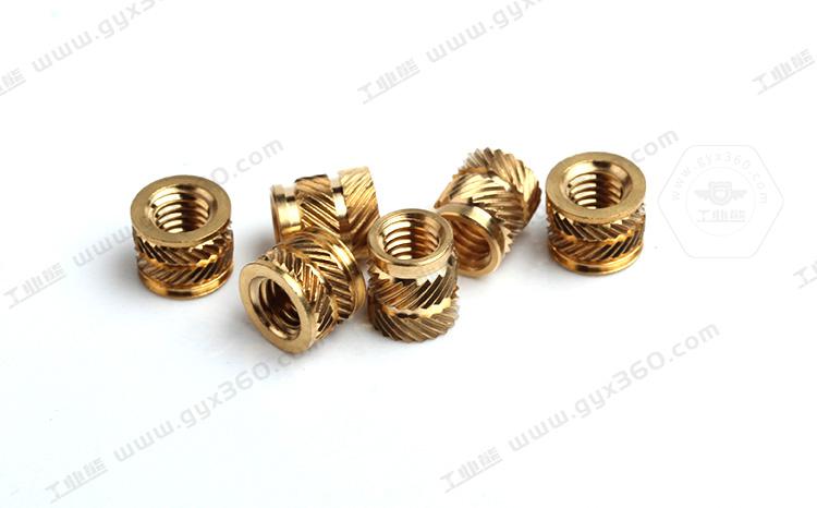 此外,在注塑行業(yè),還會(huì)用到各式銅嵌件螺母,螺母外部滾花和徑向槽與塑料緊密連接內(nèi)部螺紋提供高于塑料的強(qiáng)度與螺栓連接,廣泛用于各式塑料手柄的制造。