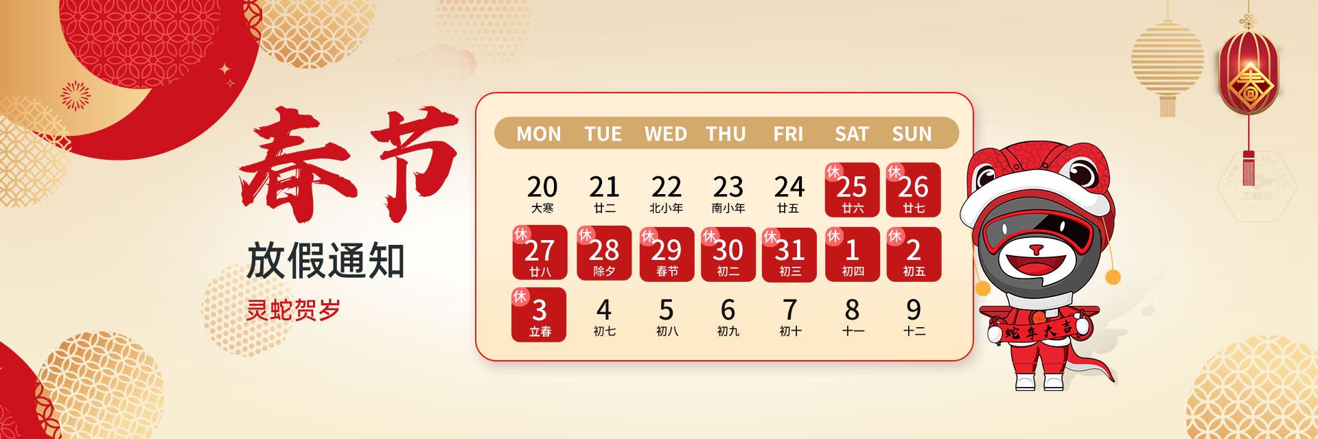 蛇年春節(jié)將至,根據(jù)國(guó)家節(jié)假日規(guī)定,結(jié)合公司實(shí)際情況,現(xiàn)就春節(jié)假期安排如下: