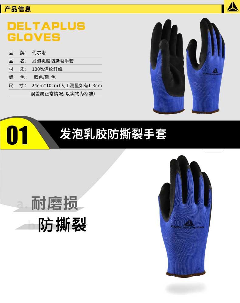 商品名稱(chēng):代爾塔 201631 勞保手套 工作手套 透氣舒.適 乳膠涂層抗撕裂 藍(lán)色