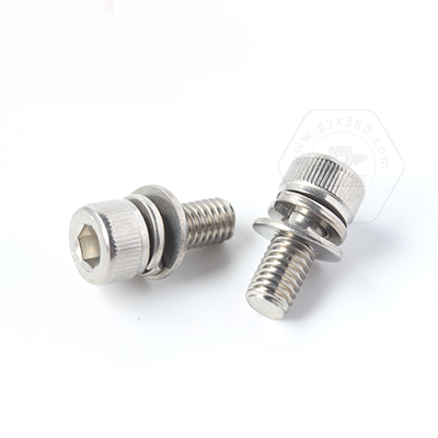 • 產品描述:DIN912 內六角圓柱頭滾花帶平彈墊組合螺釘,是組合螺釘?shù)囊环N,又稱為內六角圓柱頭組合件、內六角杯頭連接副、內六角杯頭三組合螺絲、圓柱頭自帶平彈墊螺釘。DIN912 內六角圓柱頭滾花帶平彈墊組合螺釘,由內六角圓柱頭螺釘、平墊圈和彈墊先組合后,再搓絲,形成一個組合件,組合好后墊圈能自由轉動且不會脫落。組合件使用方便,不用再另配平墊、彈墊,大大提高生產組裝效率。DIN912 內六角圓柱頭滾花帶平彈墊