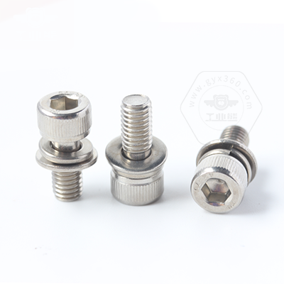 工業(yè)熊304不銹鋼A2-70內六角圓柱頭滾花帶平彈墊組合螺釘DIN912平彈墊三組合