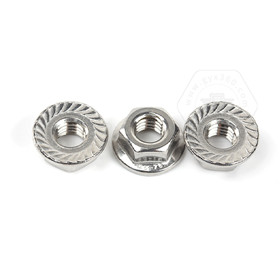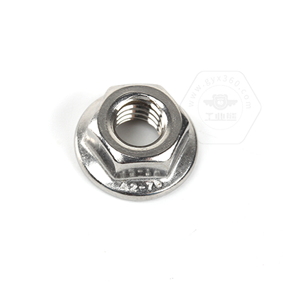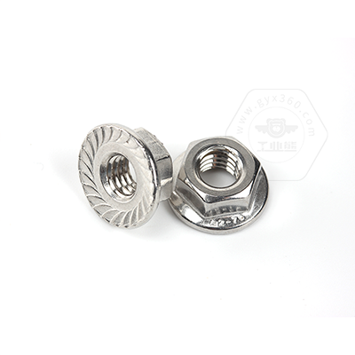• 產品描述:DIN6923 六角法蘭帶齒螺母,又名六角法蘭面帶齒螺母、六角法蘭帽、六角帶墊帶防滑齒螺帽、法蘭面防松帶齒螺母、花齒法蘭防松螺母。DIN6923 六角法蘭帶齒螺母,法蘭面與六角螺母一體成型,法蘭面帶花齒比平面法蘭鎖緊力更強。法蘭帶齒的設計具有防滑止動的作用,裝配時不需要額外使用平墊、彈墊,使用起來更為方便。DIN6923標準規(guī)定了螺紋規(guī)格為M5-M20;性能等級為碳鋼8、10、12和不銹鋼A2-7