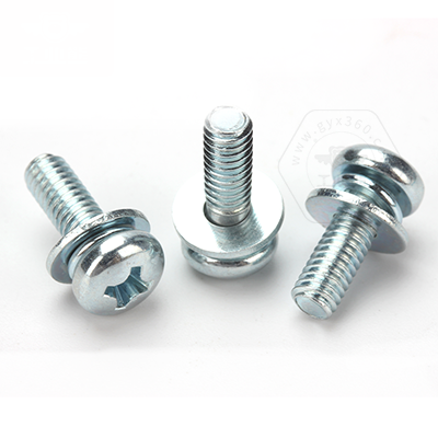工業(yè)熊碳鋼4.8級環(huán)保藍(lán)白鋅封閉(24/72h)十字槽盤頭帶平彈墊組合螺釘GB9074.4N